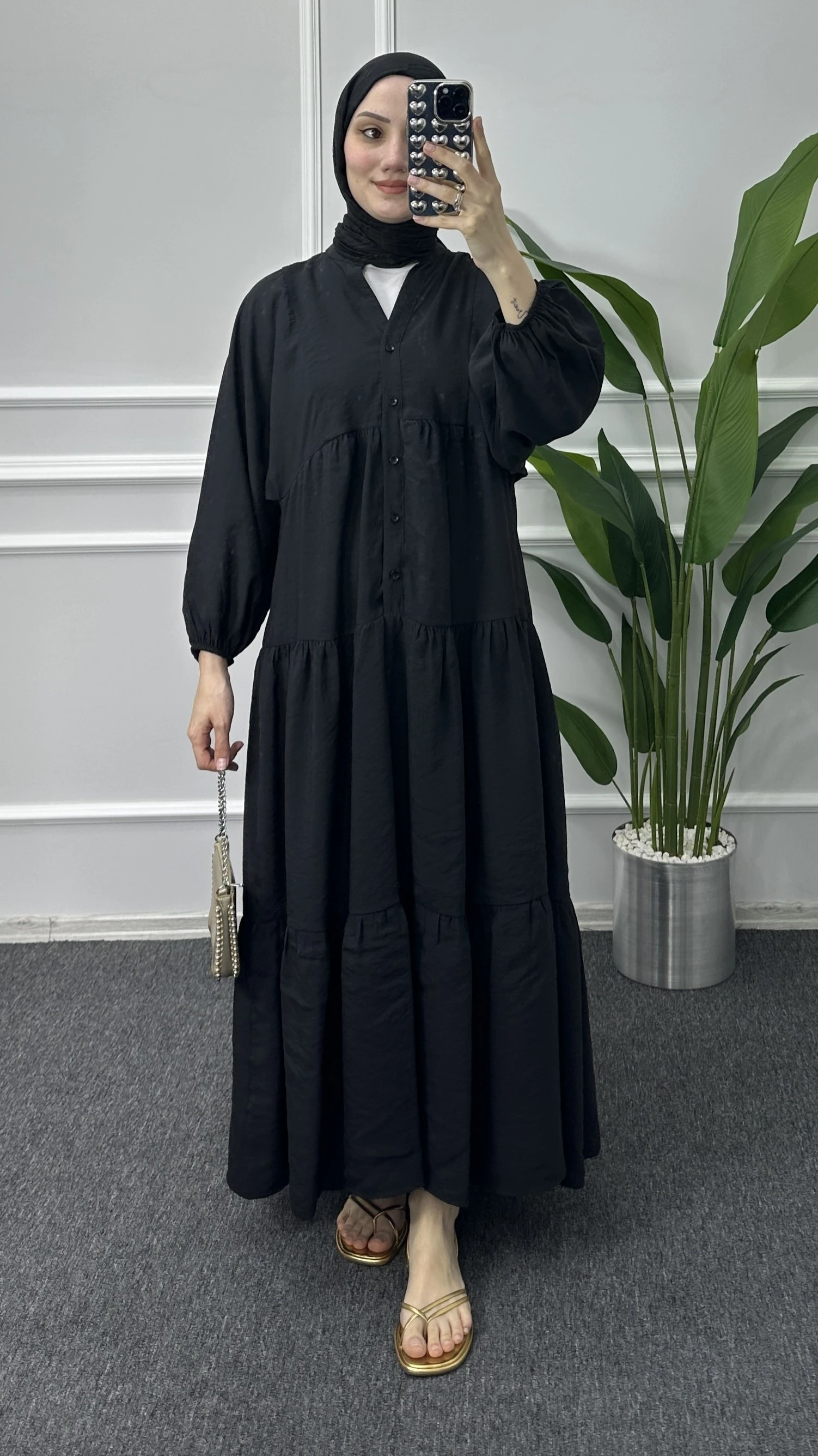 Desenli Triko Elbise 135 cm (Kemer Dahil Değildir) - Siyah